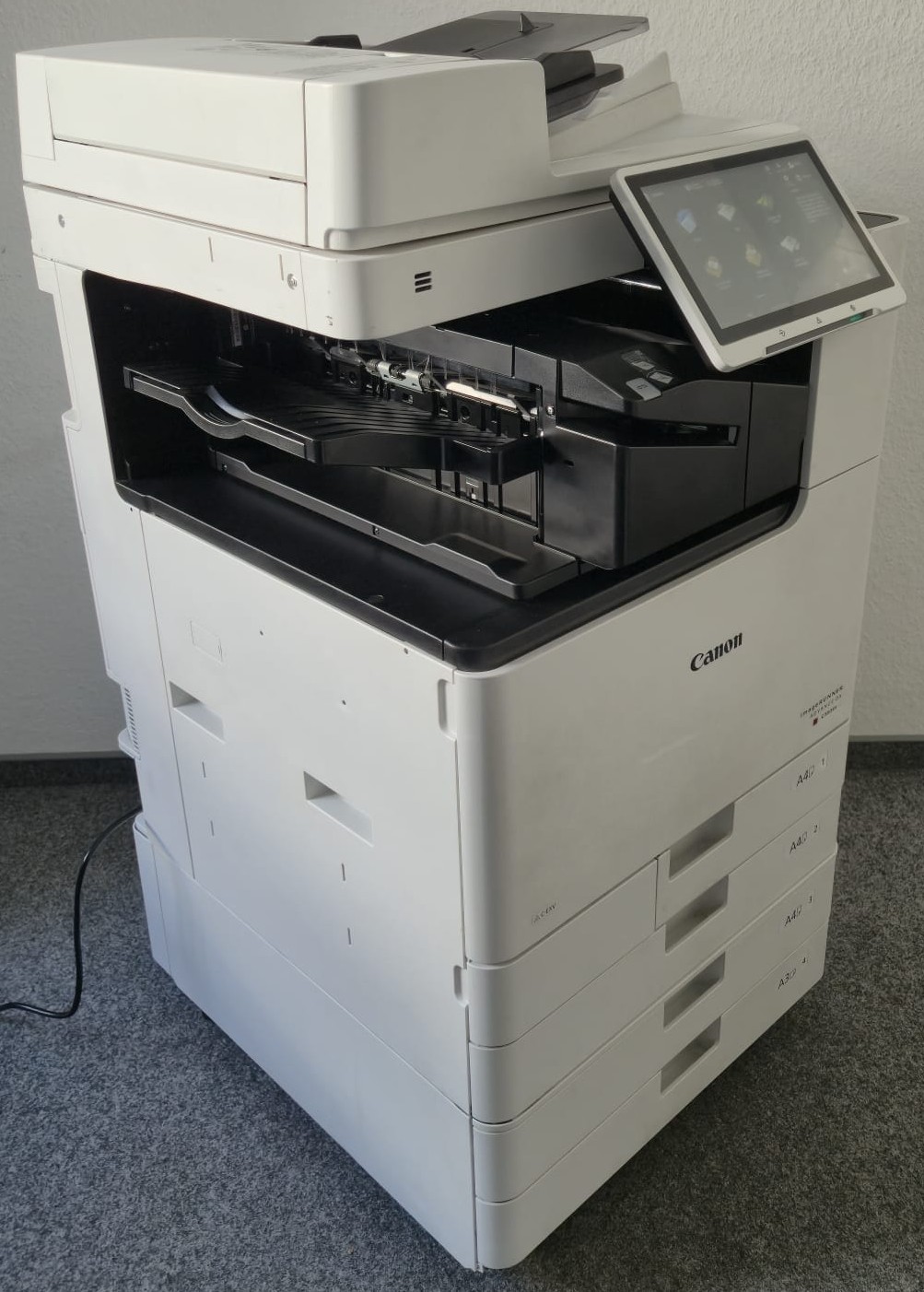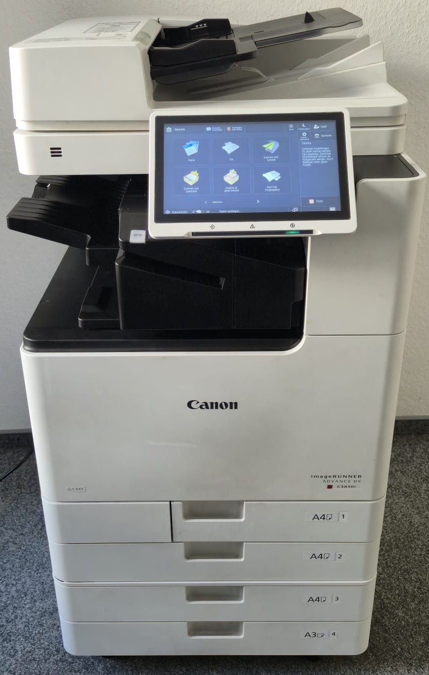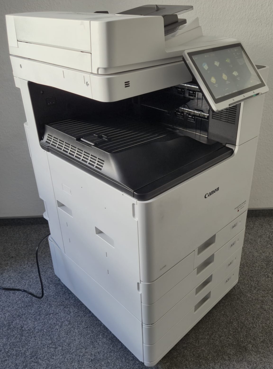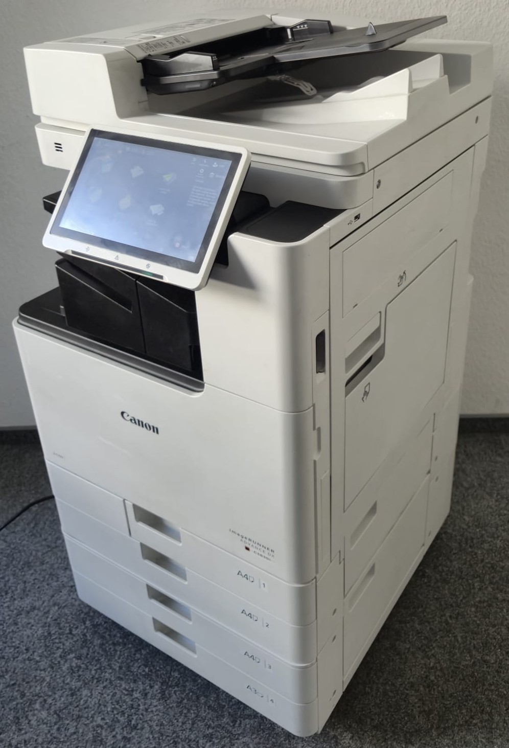 Der Canon imageRUNNER ADVANCE DX C3830i kombiniert leistungsstarkes Drucken, Kopieren und Scannen in einem kompakten System. Mit bis zu 30 Seiten pro Minute und exzellenter Farbqualität steigert er die Effizienz im Arbeitsalltag. Das übersichtliche 10,1″-Touchdisplay bietet eine intuitive Bedienung und ermöglicht einen reibungslosen Workflow – perfekt für produktive Büros.